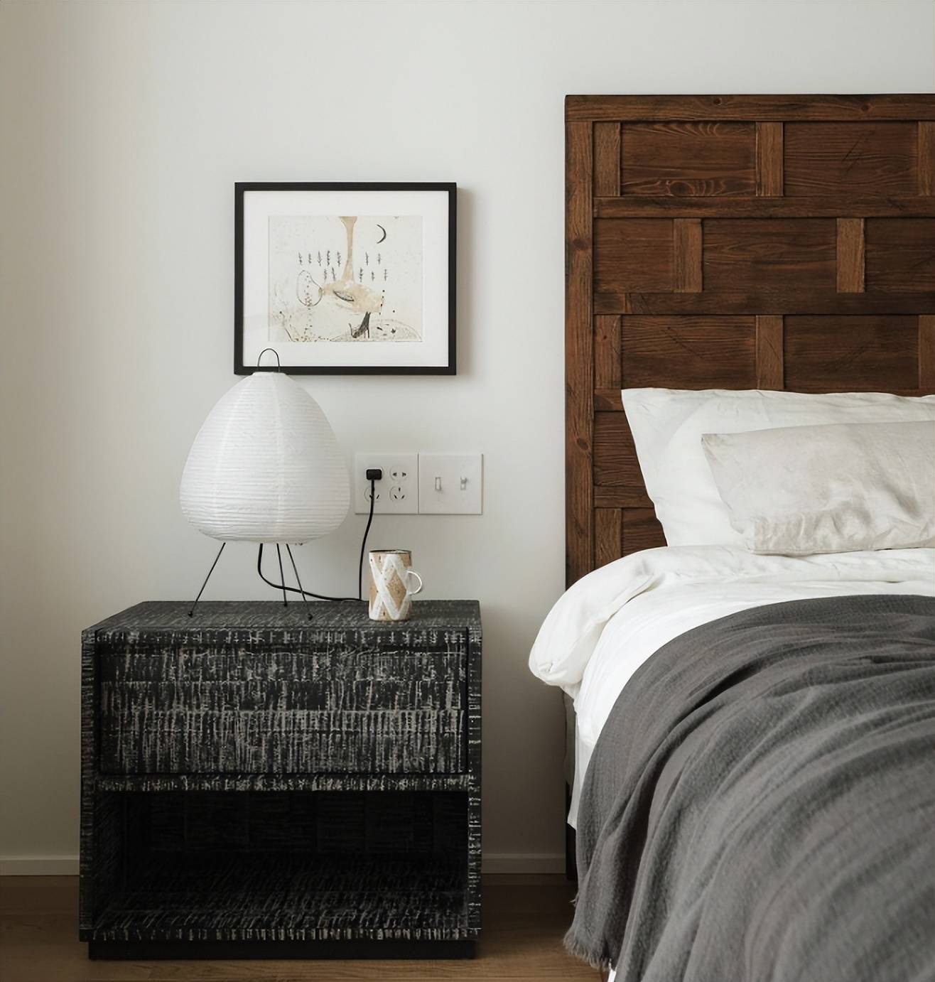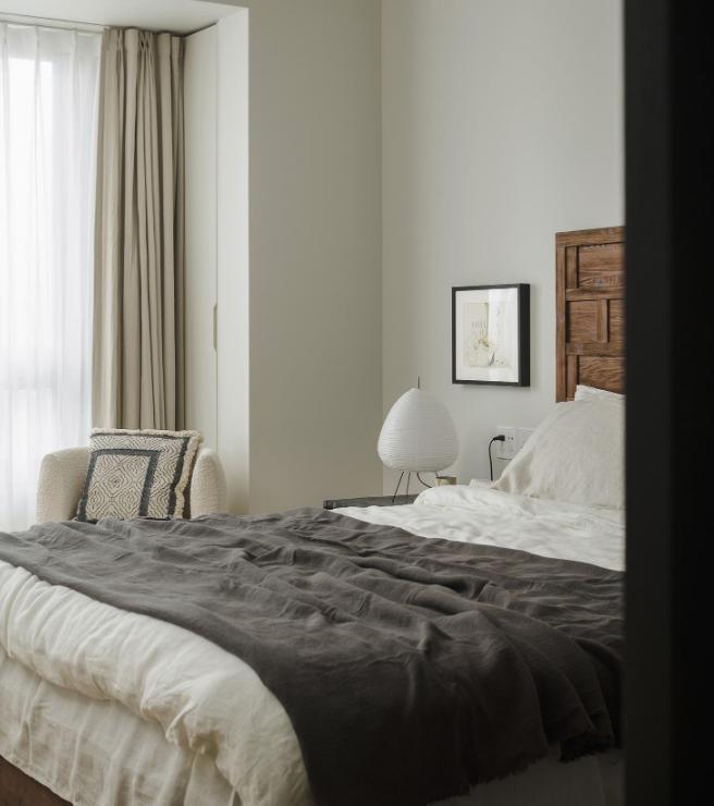 床品的低饱和度让东谈主方式愉悦,床头柜上的台灯柔软而和煦,仿佛是对一天驱驰后的见谅安危。而粉饰画上的画面,如并吞幅幅静谧的画卷,让东谈主心荡神驰。