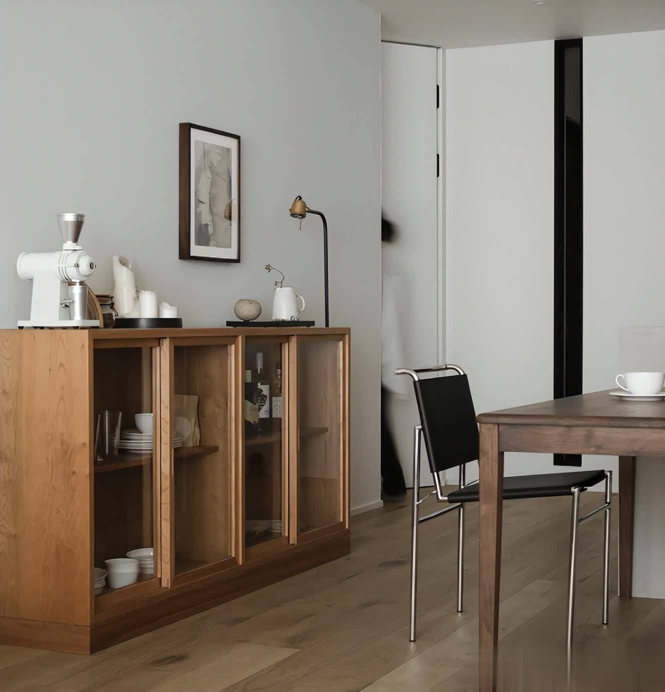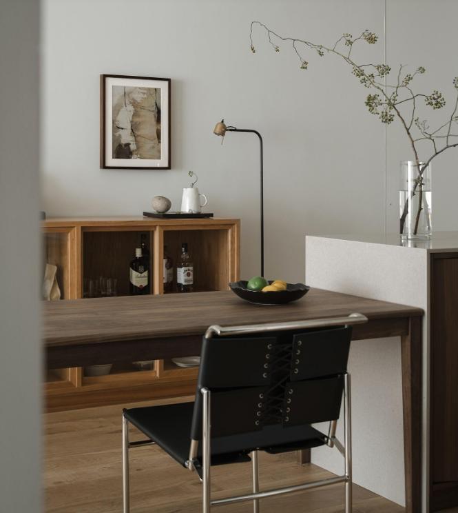 樱桃木餐边矮柜上的玻璃移门,仿佛是一个启示,透过玻璃,糊口的好意思好尽收眼底。而节约的叮嘱,让东谈主心无旁骛,只想好好享受此刻的好意思好。