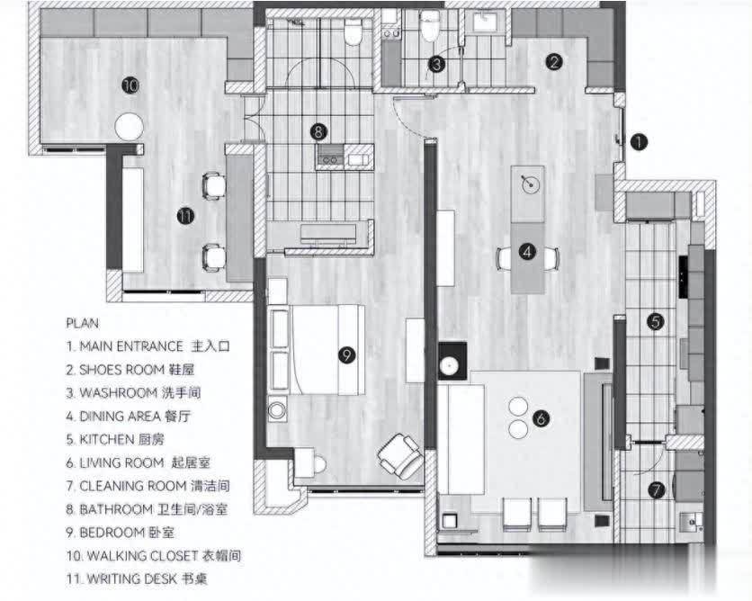 他们与筹算师一皆,字据我方的糊口民风和需求,作念了一系列的局部调度,将家分为公区和私区两部分,兑现了动静离别的筹算理念。