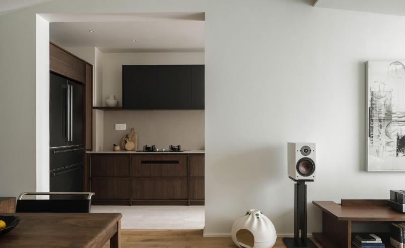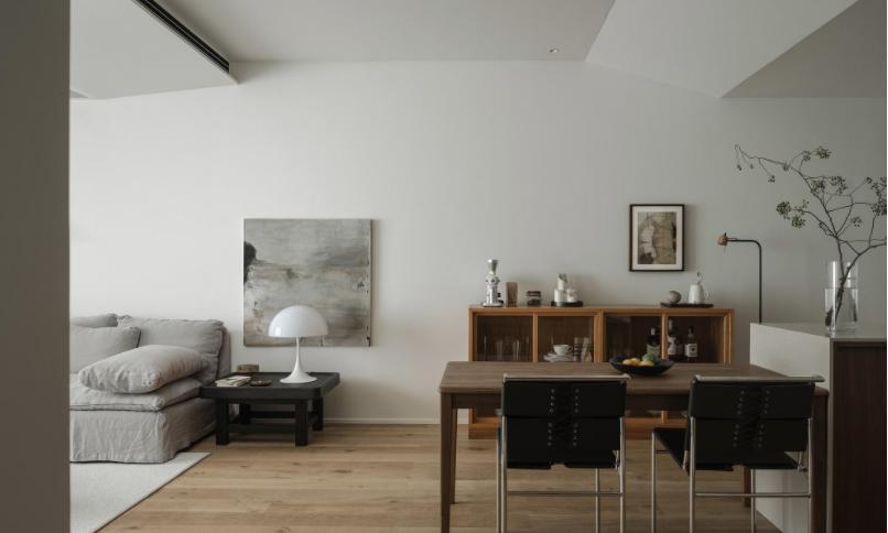 插足餐厅,节约大气的实木餐桌与玄色皮革餐椅奴颜媚骨,仿佛是糊口与艺术的圆善伙同。
