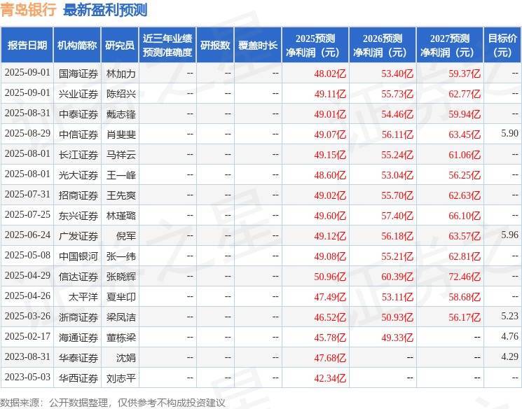 证券之星音讯,2025年9月5日青岛银行(002948)发布公告称公司于2025年9月5日召开事迹证实会。