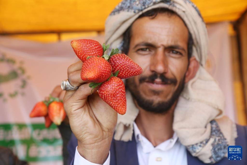 r10月6日,在也门齐门萨那,又名男人在展会上展示待售的草莓。