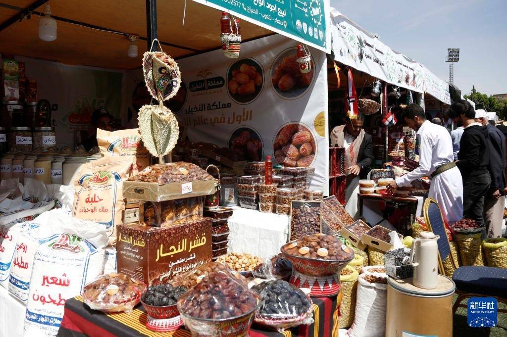 r10月6日,在也门齐门萨那,东说念主们在展会上购买多样枣类。