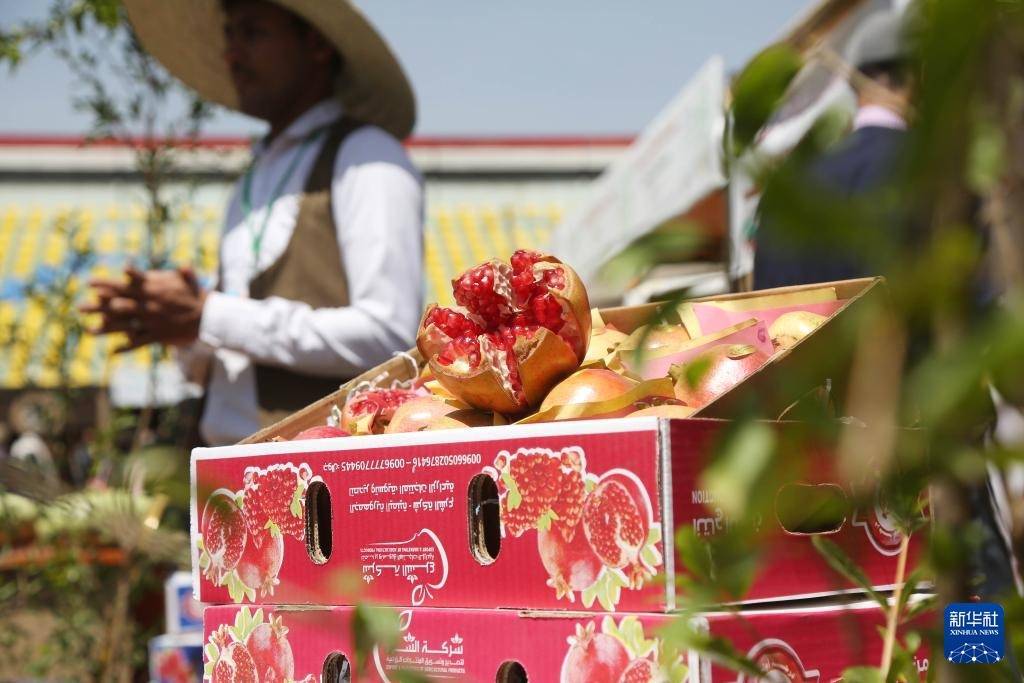 r10月6日,在也门齐门萨那,又名男人在展会上展示待售的石榴。