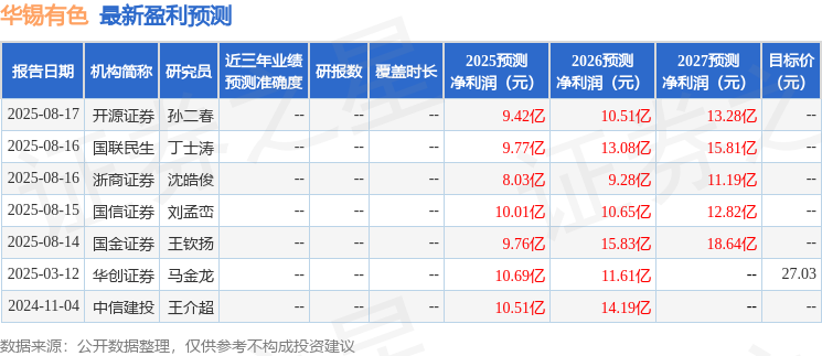民生证券股份有限公司邱祖学,李挺近期对华锡有色(600301)进行盘考并发布了盘考讨教《2025年半年报点评:锡锑共振助力功绩增长,以前增储后劲可期》,赐与华锡有色买入评级。